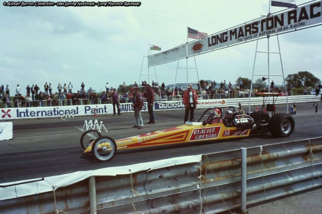 During the 1980s, Russ won the Euro Series Championship twice and maintained a fierce rivalry with Robin Read, whose Daimler V8-powered dragster was one of the few genuine challengers. That rivalry came to an end in 1989 when small nitro-fuelled cars were outlawed in the Euro Series. Russ retained the Glacier Grenade and has exhibited it regularly for more than twenty years, cementing its place as one of the most significant British drag racing cars ever built.